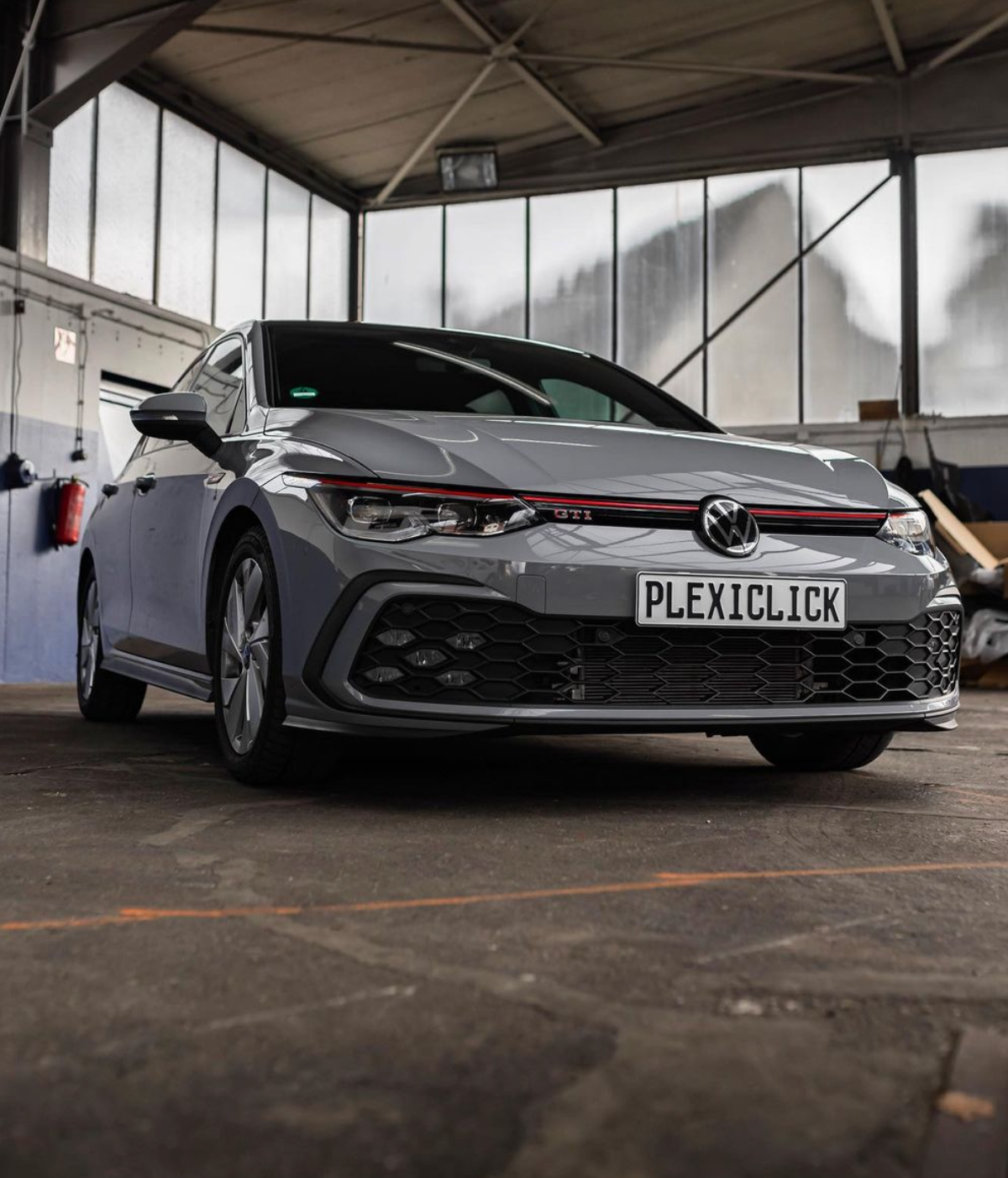 Der Plexiclick® ist durch das patentierte System einzigartig: Das Kennzeichen wird unsichtbar und rahmenlos gehalten, ohne, dass man Kleben muss oder auf Lösungen wie Klett oder Magnete zurückgreifen müsste.